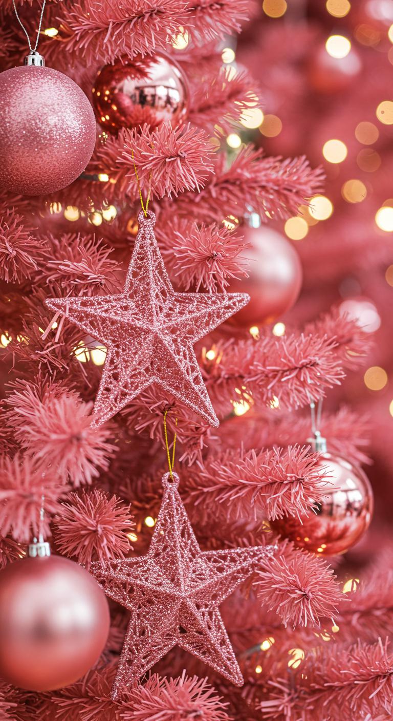 Complete your pink Christmas tree with sparkling finishing touches! Consider adding glittery baubles, elegant stars, or reflective tinsel for a festive finale. DIY options include applying glitter to existing items or crafting your own. These finishing touches reflect light and radiate joy, creating a delightful holiday atmosphere. Don’t hesitate to express your creativity while decorating and make it memorable for years to come!