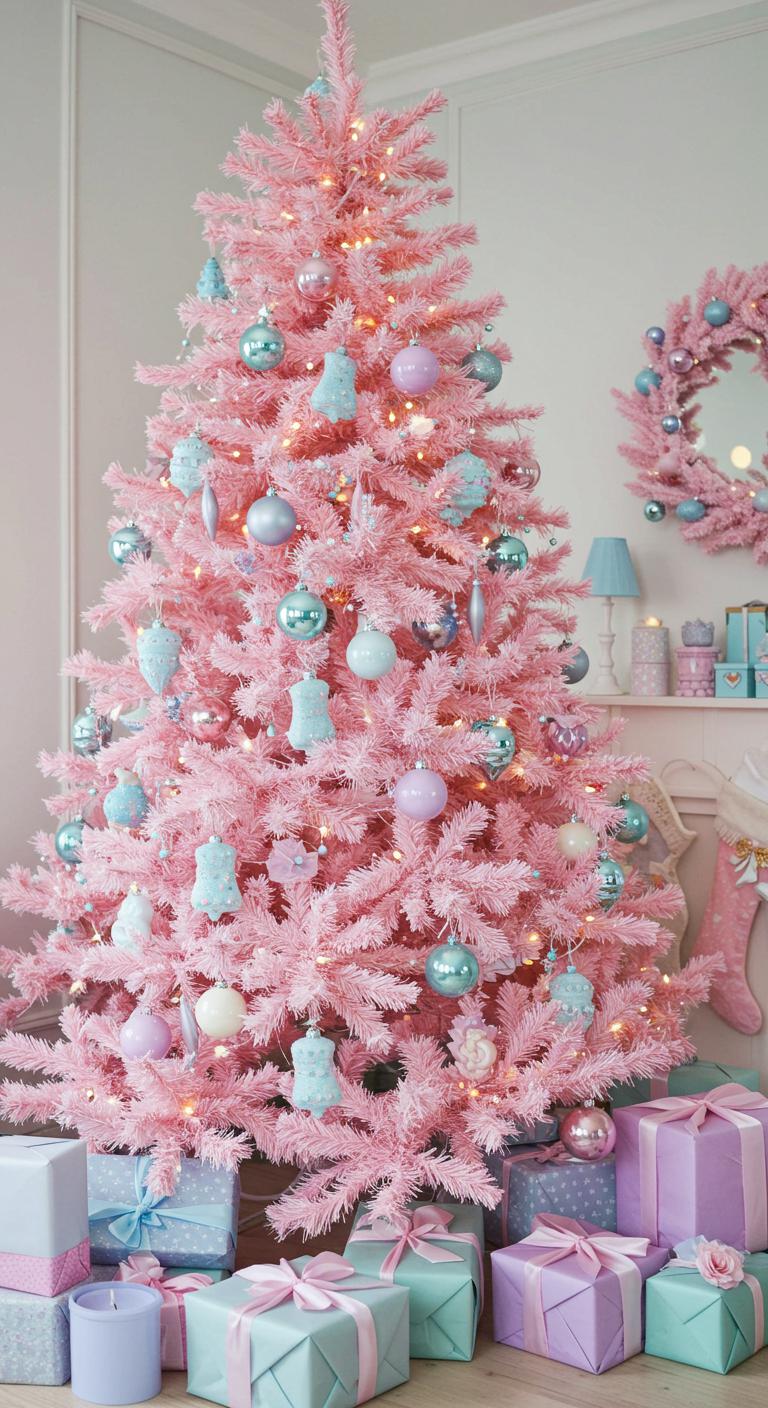 Pastels are always in style. A pastel pink Christmas tree adorned with soft lavender and baby blue ornaments brings a whimsical vibe. Choose glossy ornaments to reflect the light around them. To add character, mix vintage and charming decor—think lace and burlap ribbons. You might even incorporate handmade ornaments from your crafts stash. Each addition adds personality and warmth to the décor. This tree is perfect for children’s rooms or for anyone embracing a more youthful spirit!