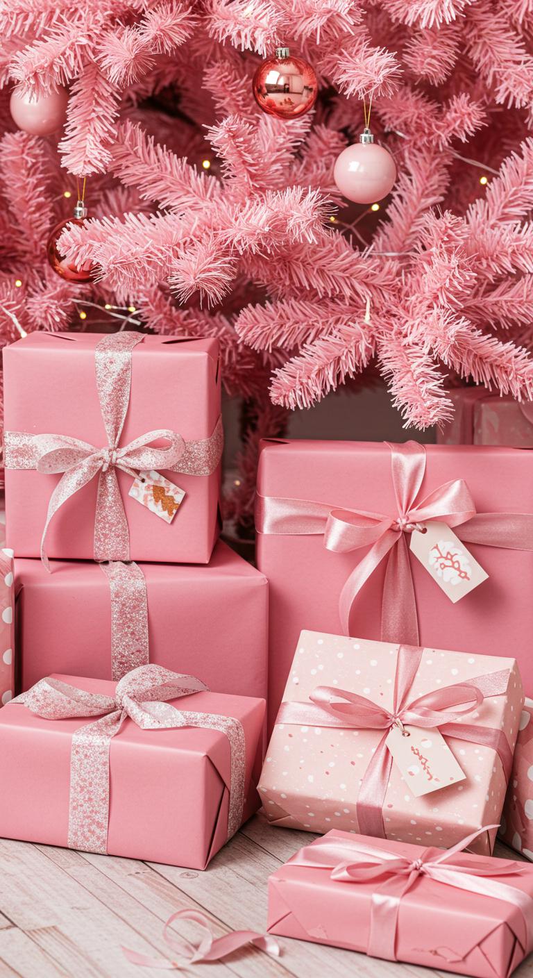 Wrap presents to match your pink Christmas tree theme! Choose wrapping paper in shades that coordinate with your tree. Consider simple craft ideas like hand-stamped gift tags and custom bows made from leftover fabric. Use twine instead of ribbon for a rustic vibe. This small touch creates a cohesive design that impresses your guests. Personalize them further by creating unique name tags for each recipient!