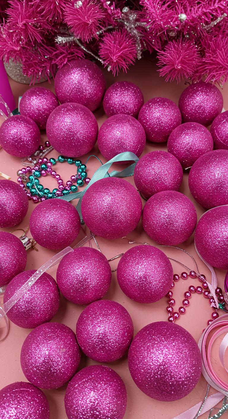 Create custom pink ornaments by repurposing inexpensive materials! Gather foam balls and cover them with pink glitter or fabric. Adding shiny beads or sequins is an option for extra sparkle. Involve children by providing materials and letting them express their creativity. Making ornaments together not only brings loved ones closer but also creates cherished memories. Plus, these unique ornaments personalize your tree with love and flair.