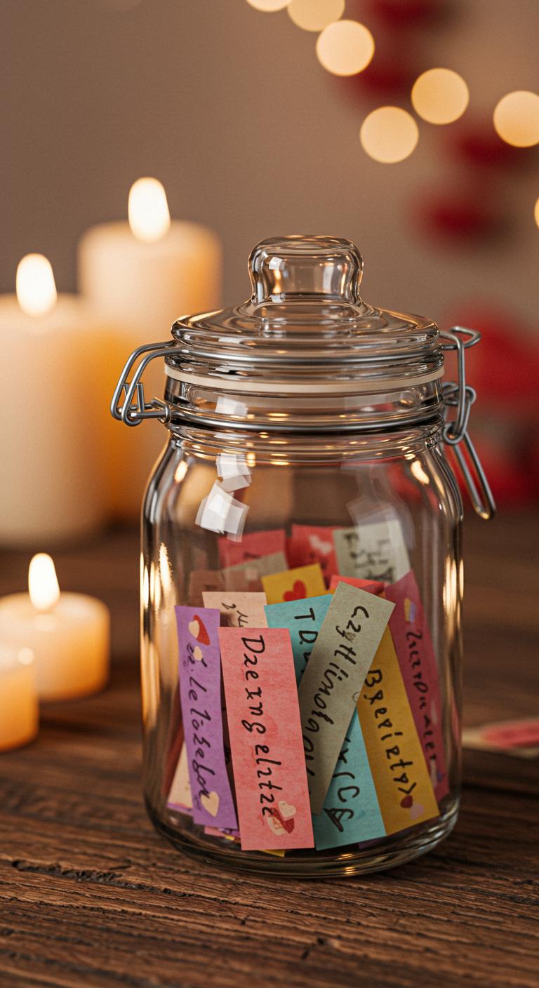 Create a DIY date night jar filled with fun ideas for dates or activities. Use colorful slips of paper to write down your creative date ideas—everything from picnics to movie nights or game challenges. Decorate the jar with holiday-themed materials for an extra festive touch. This gift not only offers variety but also encourages spontaneous adventures together. Beforehand, brainstorm ideas and execute them together for the most delightful moments!