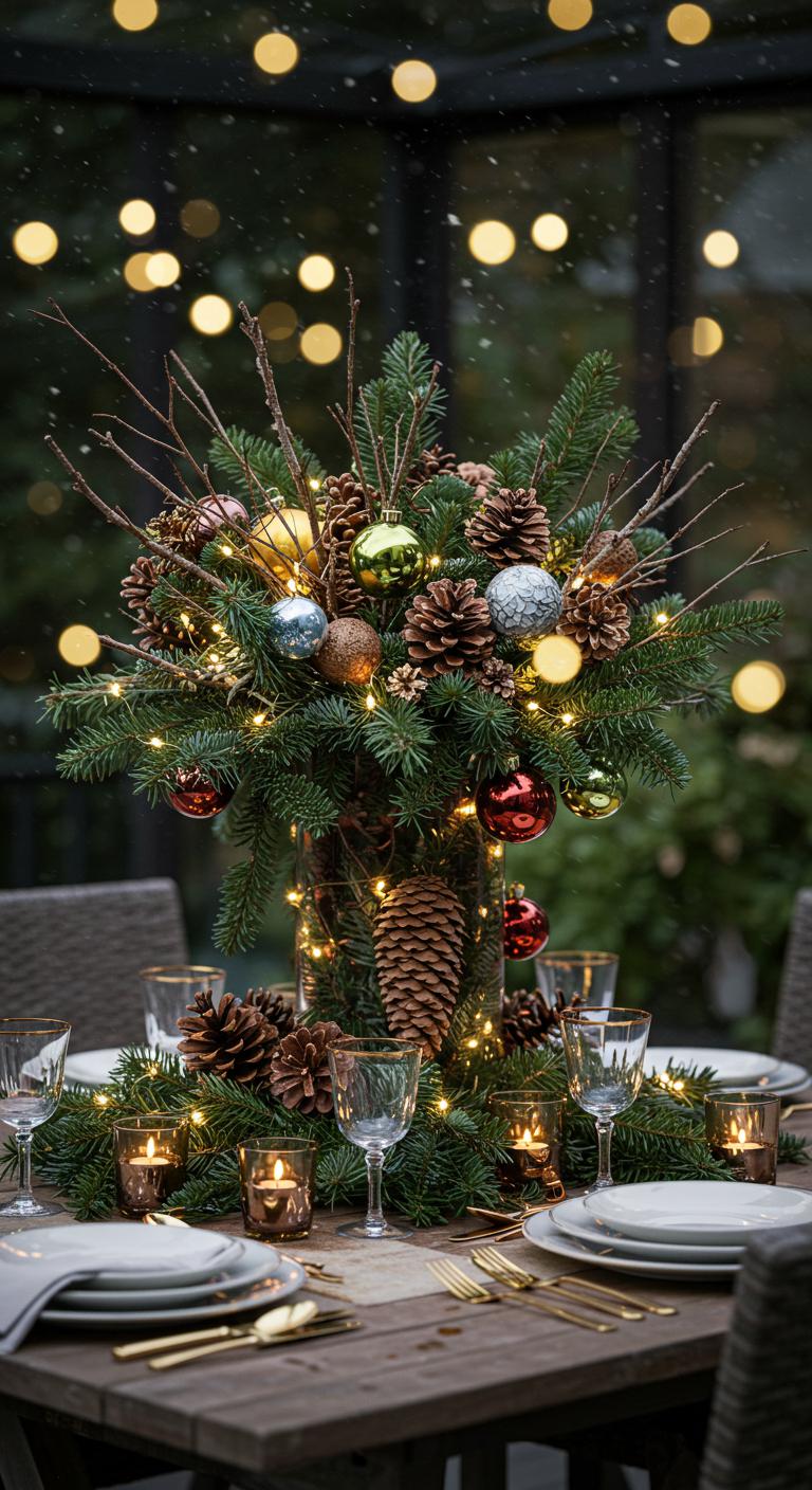 Creating an evergreen centerpiece is simple and impactful. Collect pine branches, pinecones, and other natural items from your yard. Use a shallow bowl or tray to arrange them together. Include a few candles or small ornaments for added sparkle. This centerpiece is perfect for outdoor dining or gatherings and brings a festive touch. It’s easy to create and refresh every year.