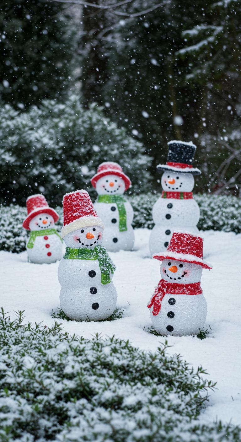 Spruce up your yard with DIY snowman decorations. Use old clothes or fabric to give them fun personalities. You can employ simple things like balloons stuffed with leaves for the head. Add buttons and a carrot for a nose using real ones or painted alternatives. These cute little creations can be made at any age and contribute to a playful holiday spirit in your yard.