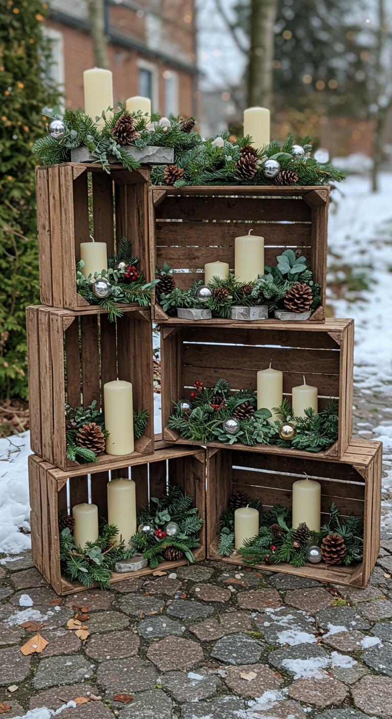 Create a wooden crate decoration setup that captures holiday cheer. Obtain a few wooden crates from local retailers or online marketplaces. Arrange them in a visually appealing manner—stack some and leave others horizontal. Fill these crates with seasonal touches like candles, pine branches, or ornaments. This versatile decoration fosters a cozy atmosphere while offering an engaging look that’s simple yet effective.