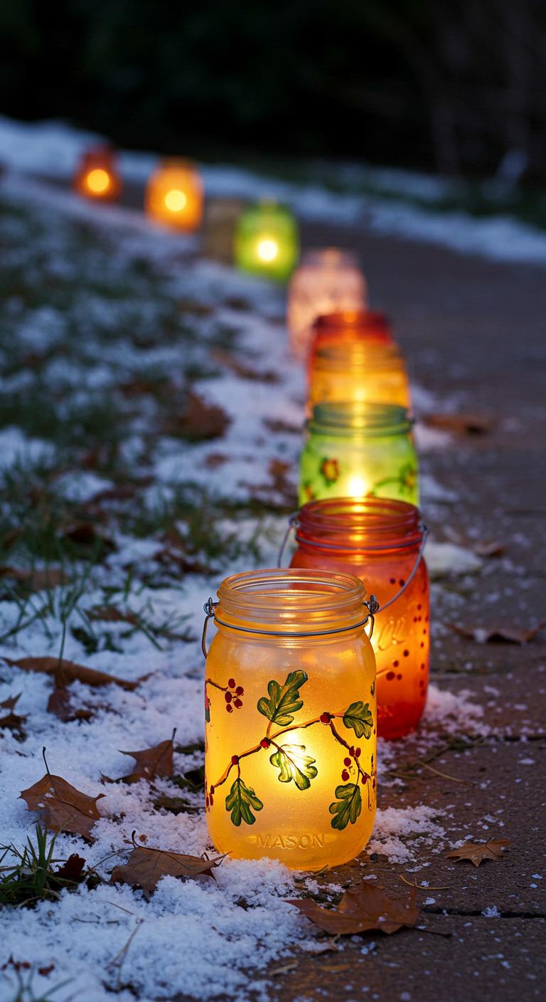 Mason jar luminaries are easy to create and provide a soft glow. Simply clean and dry your mason jars before filling them halfway with sand or pebbles. Add tea lights or solar lights for illumination. For a personal touch, decorate the outside with ribbons, stickers, or paint. Line these luminaries along your walkway or on a porch to create a charming, welcoming vibe. They shine beautifully at night, perfect for guiding guests to your door.
