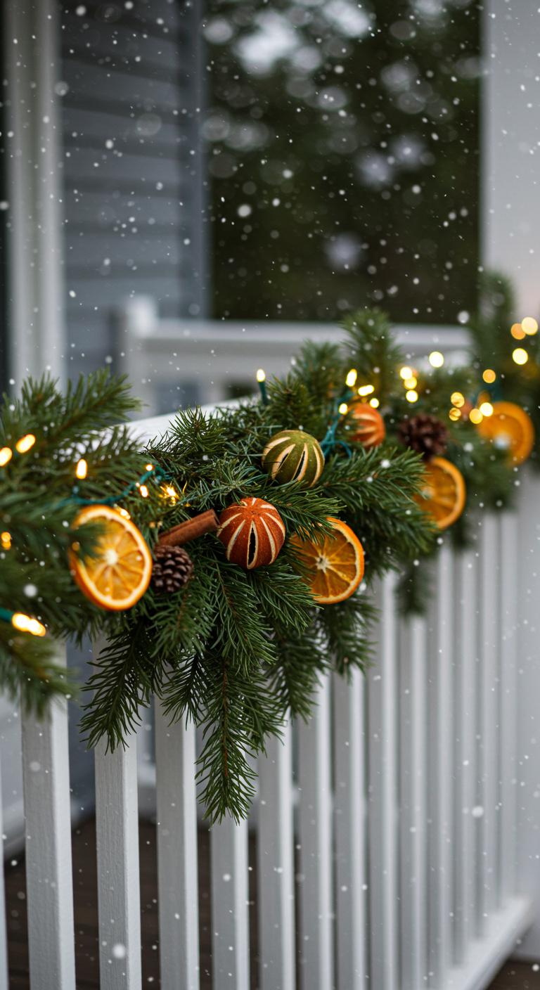 A simple DIY garland can transform any outdoor space. Use pine branches, twine, and other natural elements like dried fruits or cones. Weave them together and add lights for a magical touch. This garland looks great wrapped around porch railings or hanging above doorways. Keep it fresh by occasionally replacing parts with new greenery; it’s a sustainable decoration that will impress the neighbors.