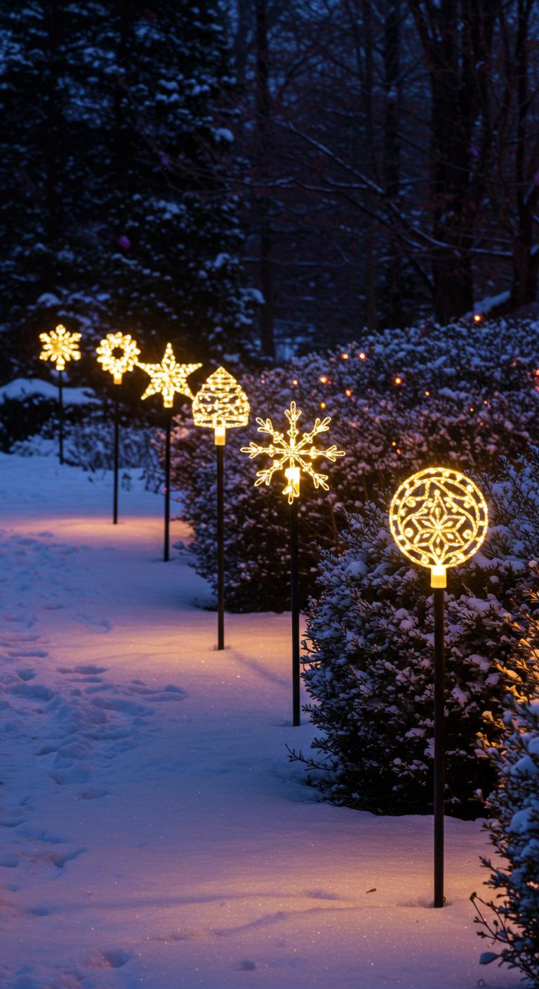 Transform your garden with stake lights that shine bright! Purchase inexpensive garden stakes or make your own from wooden dowels. Use a string of mini lights to wrap around the stake and secure it tightly. Insert the stakes into flower beds or along pathways. This creative design enhances your yard’s festive flair while guiding guests with a sparkling path. Plus, it’s an easy way to involve your kids or family in the decorating fun!