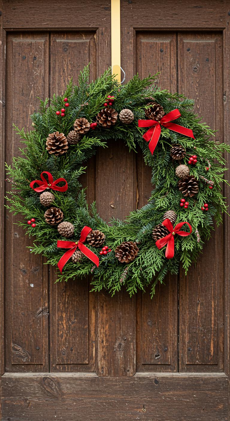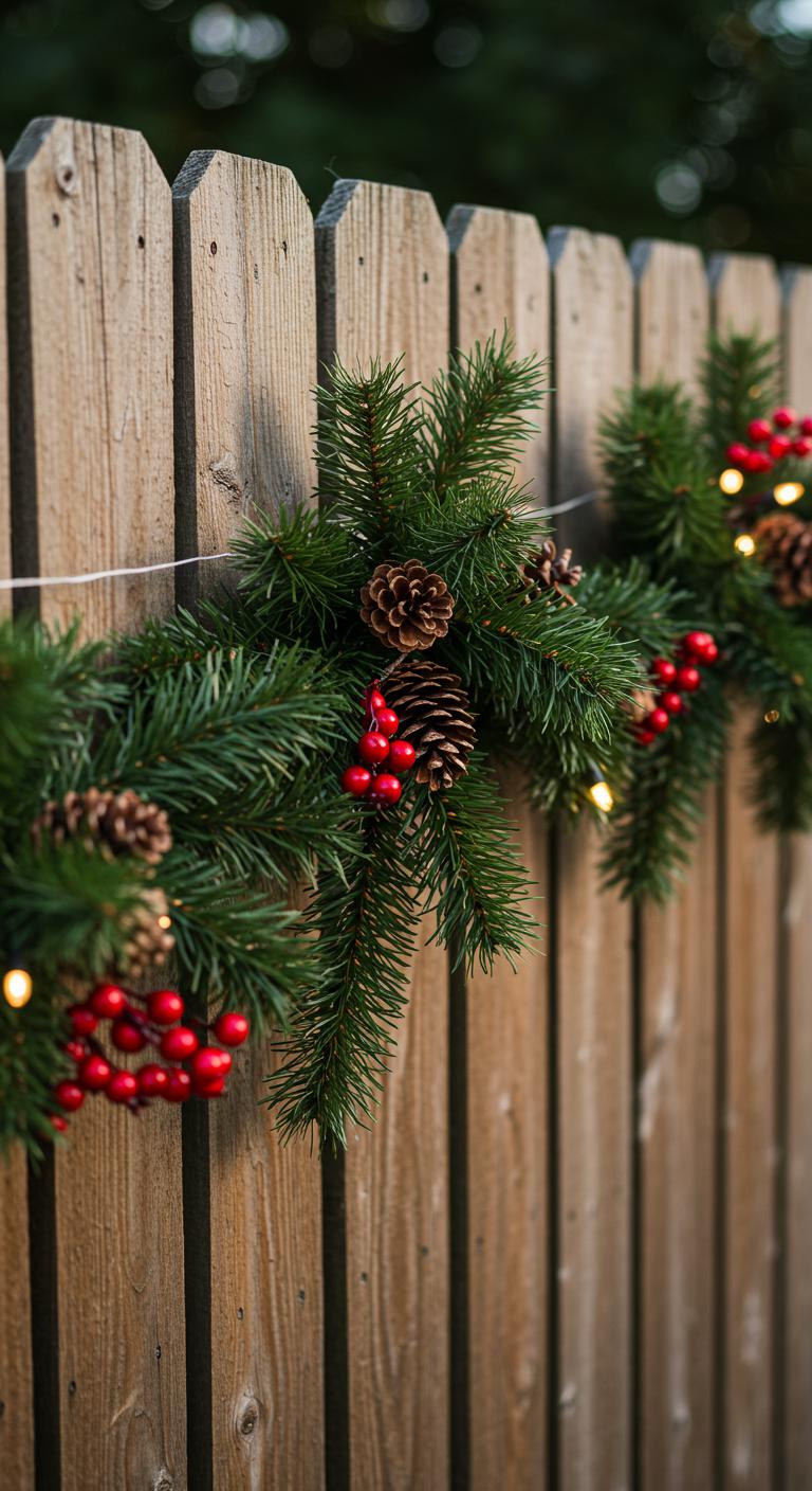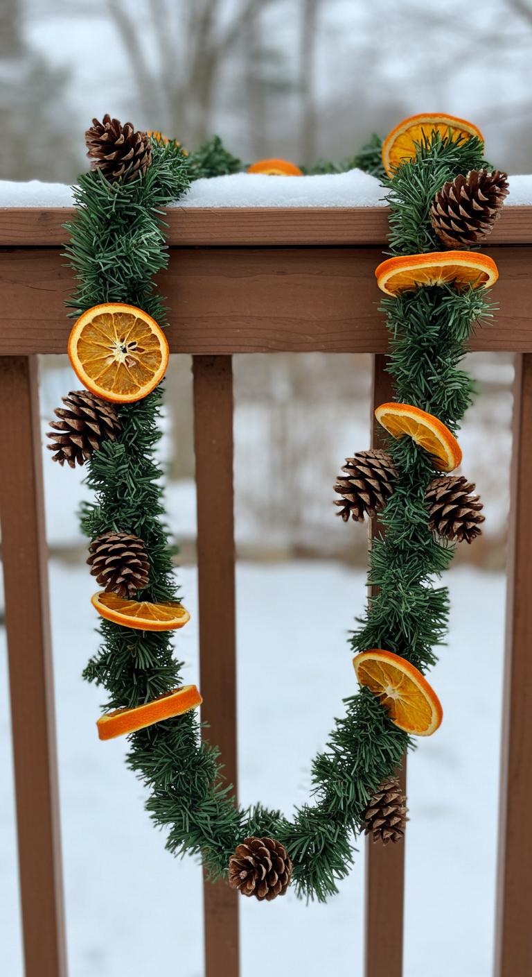 A pinecone garland is a simple and lovely addition to your outdoor decor. Collect pinecones during a nature walk and string them onto twine. You can add dried orange slices or cinnamon sticks for a festive aroma. Drape this garland over your porch railing or along the length of fences. It’s a straightforward project that beautifully integrates natural elements into your holiday decor.