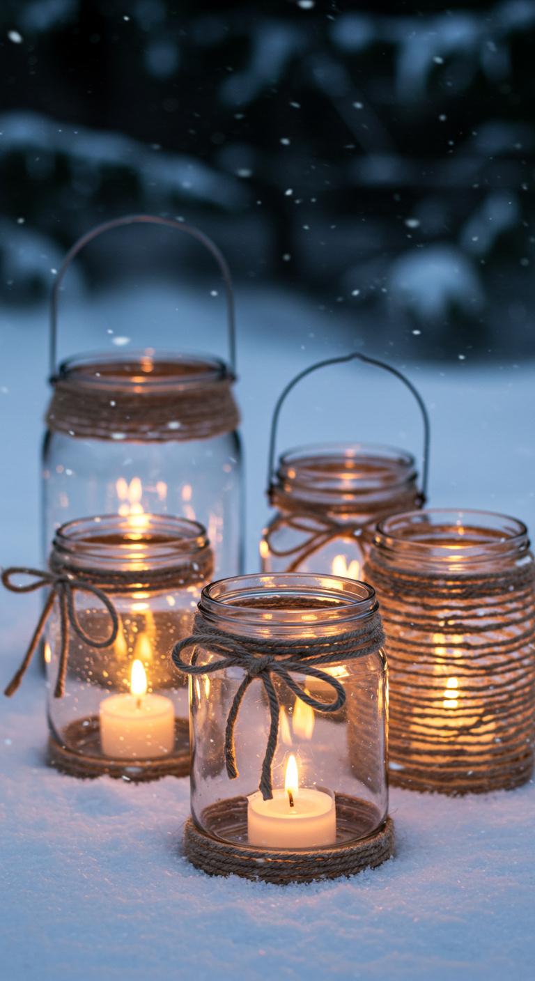 Decorative lanterns can set a cozy scene outdoors. Use old glass jars and fill them with LED candles or fairy lights. Wrap twine around the jars for an appealing rustic finish. Hang them on hooks or place them on tables to create a warm ambiance. This project is not only budget-friendly but adds a romantic touch to your holiday decor, perfect for evening gatherings with family and friends.