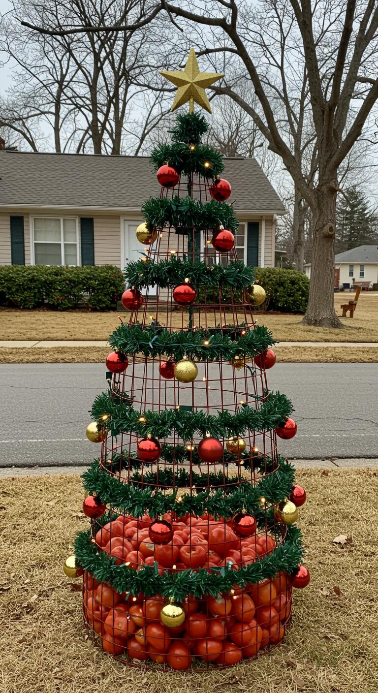 Tomato cages can morph into charming Christmas trees with minimal effort. Simply turn the cage upside down and wrap it in LED string lights. You can decorate it with ornaments made from DIY projects, such as painted pinecones or salt dough ornaments. This decoration is lightweight and can easily withstand winter weather. Plus, it’s a fabulous way to showcase your creative side without spending too much!