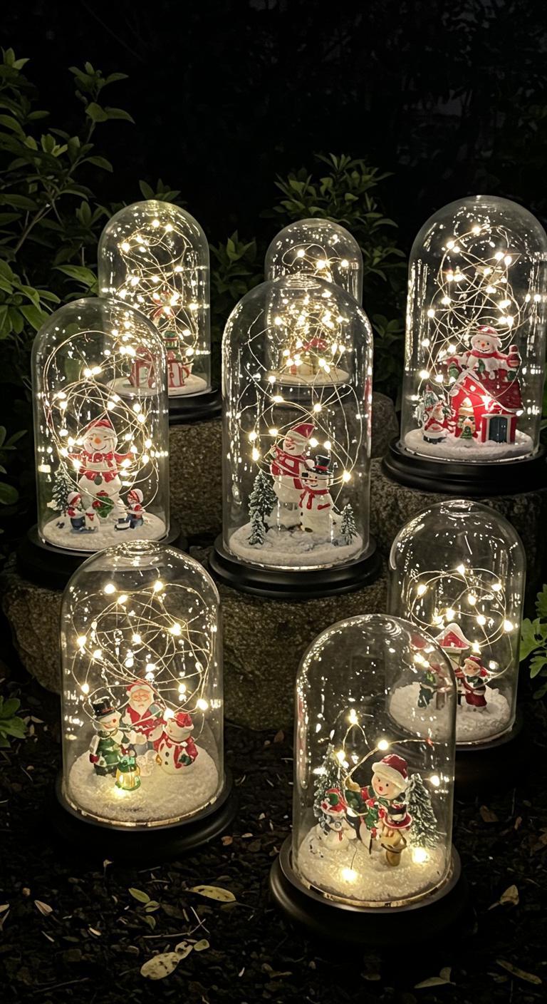 Creating mini light displays inside glass domes or cake stands adds a something special to your outdoor decor. Gather small holiday figurines or natural elements like pine branches and arrange them inside. Wrap the entire assembly with twinkling fairy lights. Set them up on your porch or garden table for a charming touch. This project is budget-friendly and gives a magical vibe to your outdoor space, capturing the essence of the season.