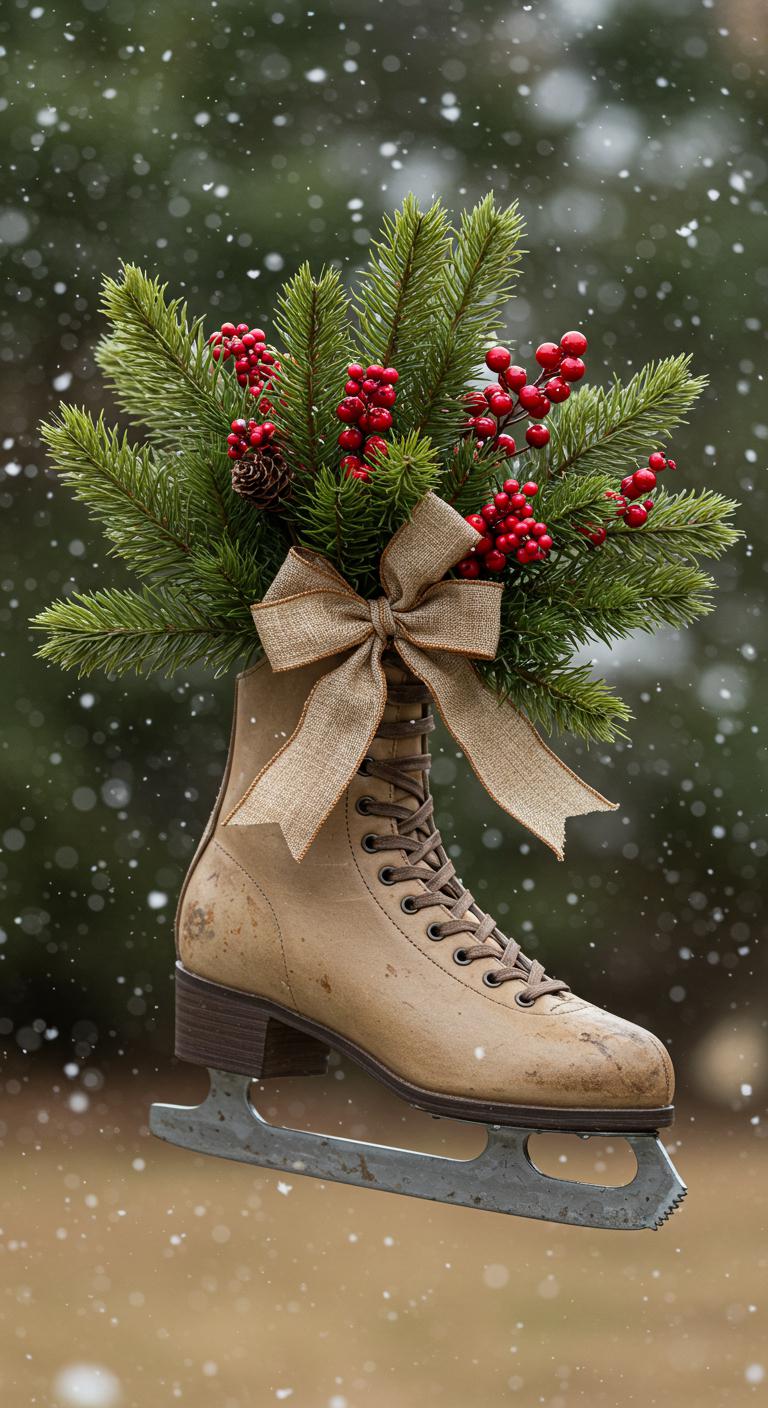 Old ice skates can become a charming holiday accent. Remove the blade and fill the inside with fresh greenery like pine branches. Add berries and a festive ribbon for an extra touch. You can hang these on doors or place them on your porch. This upcycling idea gives a vintage vibe while adding holiday cheer to your home. It’s an easy project that brings character to your outdoor space.