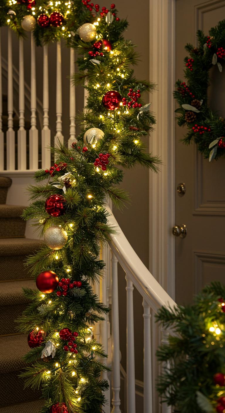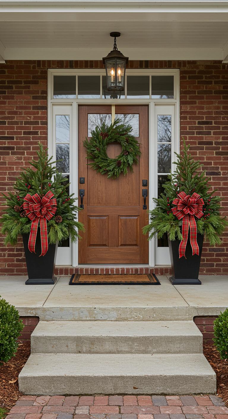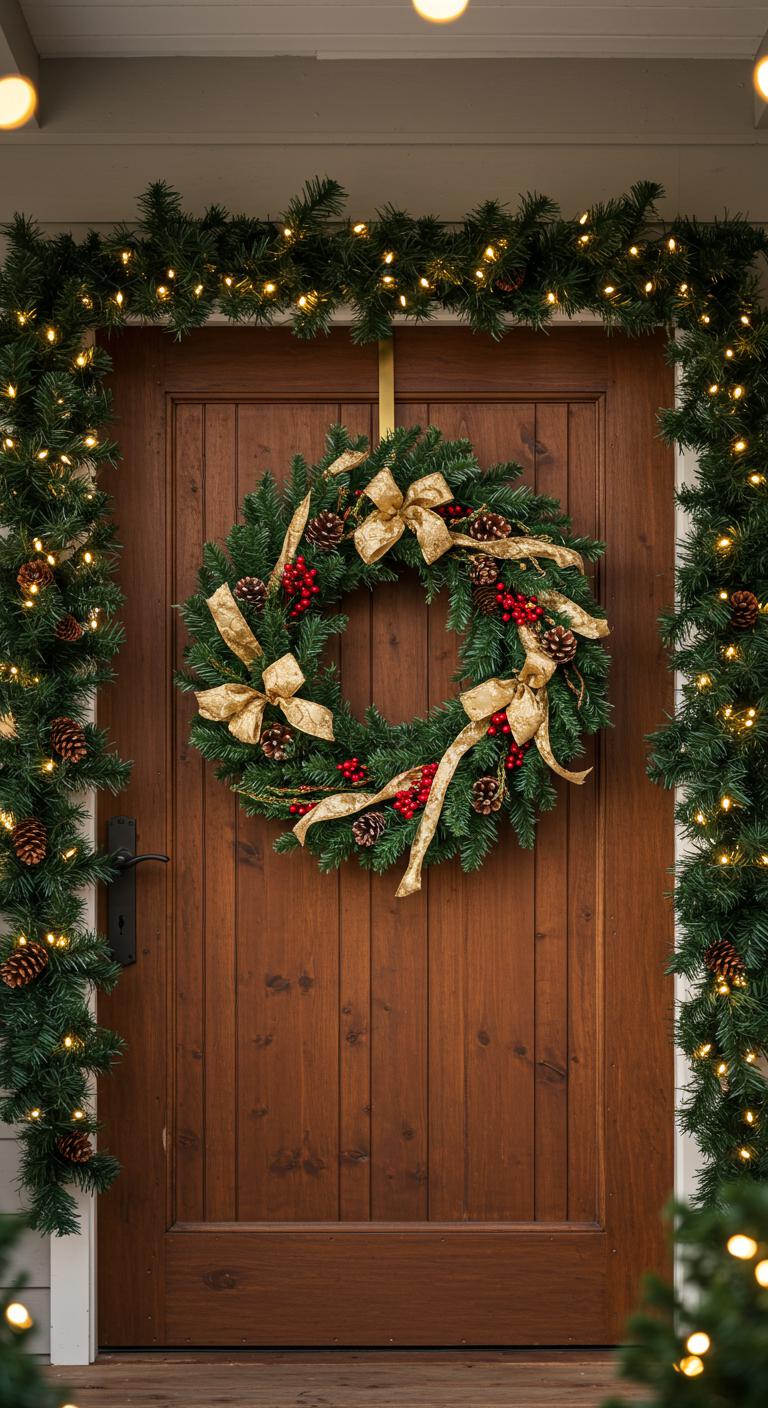 A holiday garland draped along your porch railing can create an enchanting appeal. Use fresh or faux garlands for easy maintenance. Personalize it by adding bright ornaments, sparkling lights, or even festive bows. Attach the garland securely with zip ties to ensure it stands up to winter weather. For a more budget-friendly approach, DIY your garland using greenery from your yard, combined with twinkling lights. This will instantly elevate your entryway’s festive feel.