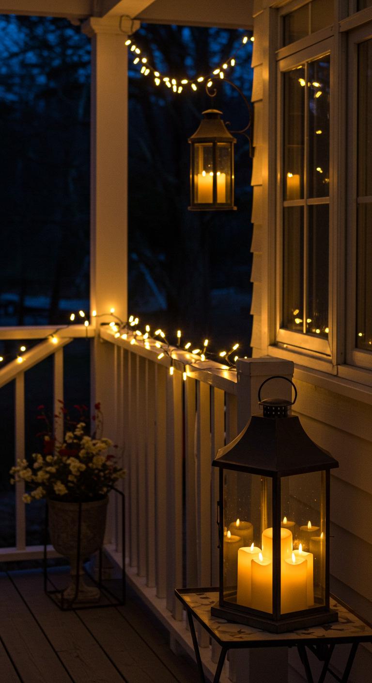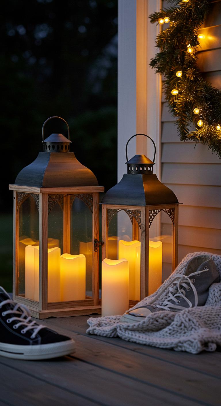 Statement lanterns offer both style and warmth. Choose large, captivating designs to place on your porch for a cozy atmosphere. Fill them with flameless candles for a safe glow. Look for lanterns in contrasting colors to your porch for a striking effect. You can even DIY with paint or decorations to match your theme. Alongside your lanterns, consider throwing in some plush seating and pillows to create an inviting ambiance.