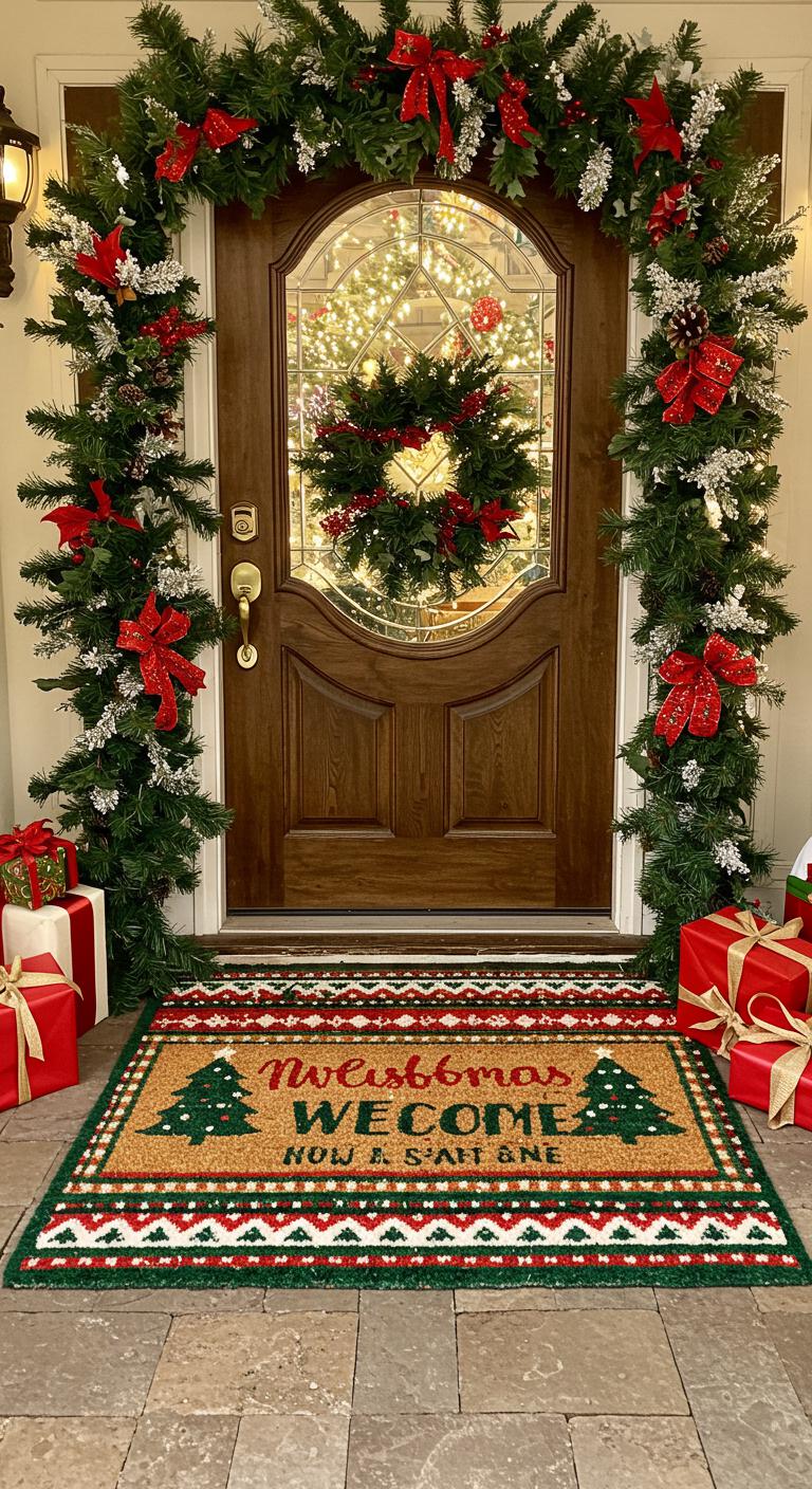 A holiday-themed door mat sets the tone before guests even step inside. Choose one that showcases your style, whether it’s humorous, heartfelt, or trendy. Look for options at local stores or craft an original using stencils and paint on a plain mat. This easy DIY project adds a personal touch while being budget-friendly. Consider a mat featuring playful designs or classic seasonal quotes. It’s the little details that make your porch feel extra special and inviting.