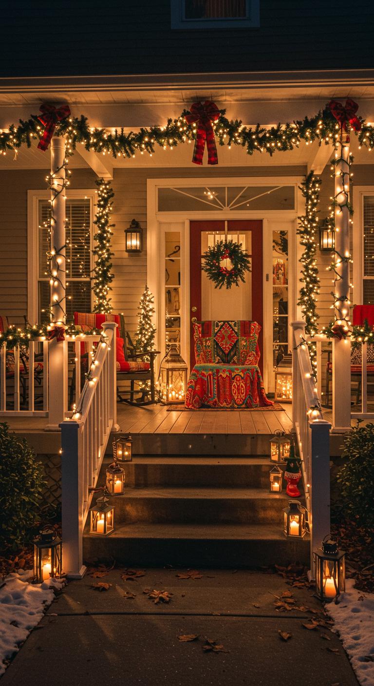 Lighting plays a crucial role in creating a warm holiday atmosphere. Consider draping fairy lights along railings or wrapping them around columns. Choose warm white lights for that cozy glow. Incorporate lanterns adorned with flameless candles for safety and elegance without the worry of real flames. Hang larger decorative lanterns by the entryway; this adds visual interest and warmth. Check out local dollar stores for affordable options. These lights enhance both beauty and safety as guests navigate your decorated porch.