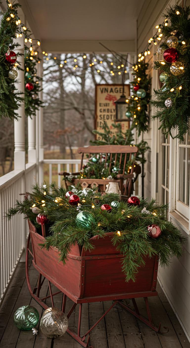 Incorporating vintage-inspired decor adds character to your porch. Think of wooden sleighs filled with greenery, ornaments, or even presents. Visit antique stores or flea markets to find unique pieces that speak to you. Consider adding rustic signs that reflect your holiday spirit, like “Welcome” or “Merry & Bright.” Combining these elements creates a nostalgic feel that resonates with the spirit of Christmas. Simple wooden crates can serve as rustic tables for those vintage finds.