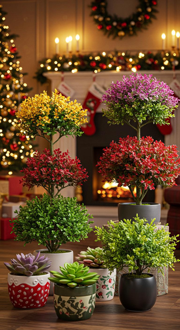 Budget Tip: Craft your own decor by combining thrift store planters with simple DIY artificial plants for a tailored holiday look.