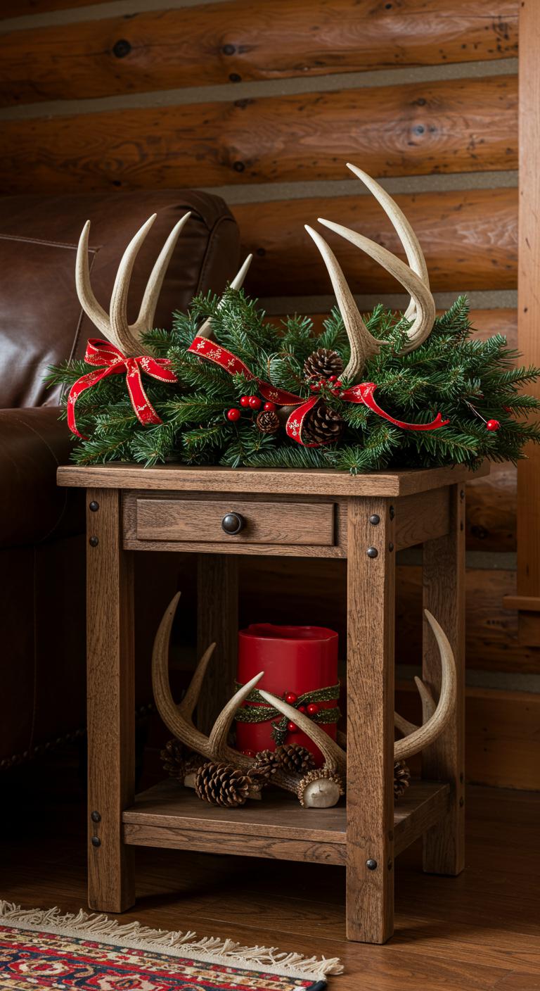 Incorporate antler decor for a rustic touch that captures the spirit of the outdoors. Use real or faux antlers, placing them on tables or mantels with greenery. You can find many faux options at local decor stores. Tying ribbons and sprigs of evergreens around them adds a festive flair. This simple touch brings a bit of the wild into your cozy cabin space.