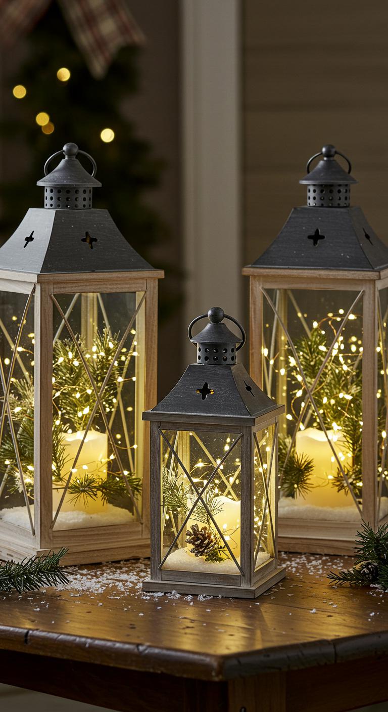 Lanterns add a classic touch to your decor. Fill them with faux snow, greenery, and lights. Arrange them on your porch or dining table for charming accents. You can also find inexpensive lanterns at thrift stores. Add a painted finish for a rustic look. This project is not only easy but brings a cozy ambiance to any location in your home.