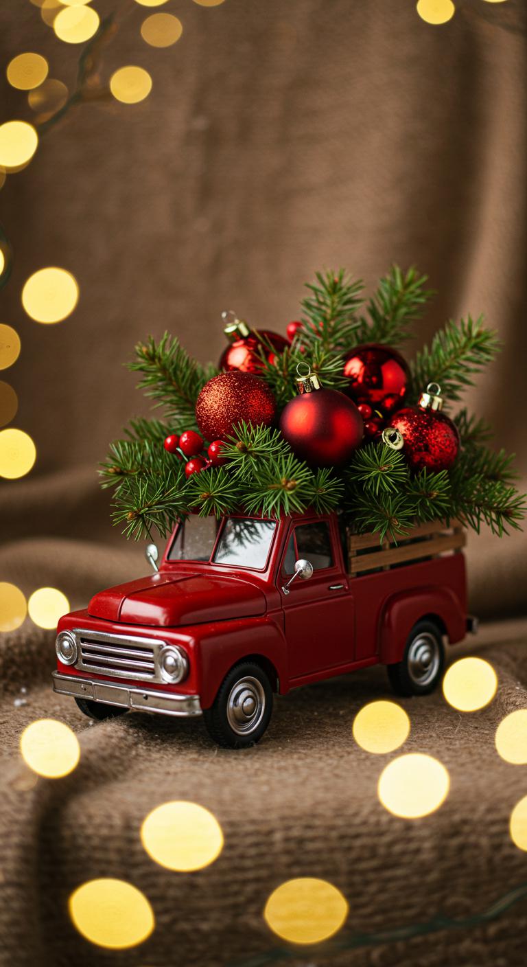 A vintage truck is a fun decor piece for any holiday setting. You can find them at craft stores or thrift shops, usually at a low price. Fill the truck’s bed with greenery, baubles, or gifts. This classic decoration adds joy to your holiday decor. Place it on a table or use it to display your favorite treats for guests to enjoy.