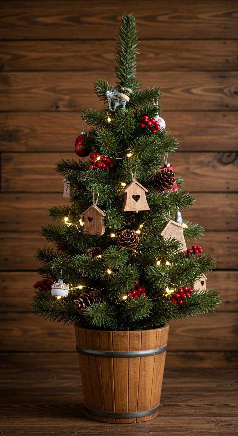 Bring the spirit of Christmas indoors with a charming fir tree. Whether big or small, they add cheer. Decorate with rustic ornaments made from natural materials. Use twine or burlap ribbons for hanging. If space is tight, consider a tabletop version, perhaps in a wooden bucket for a touch of charm. Focusing on natural accents will enhance its rustic appeal.