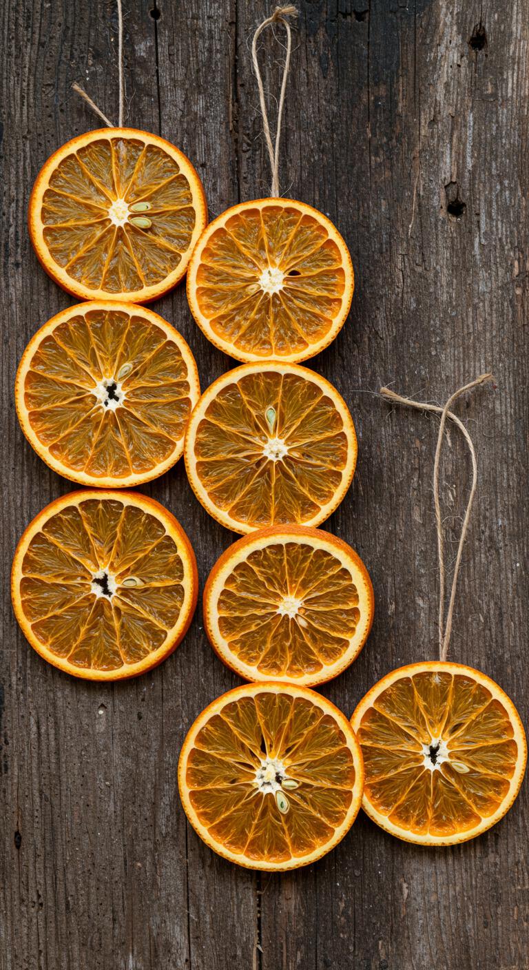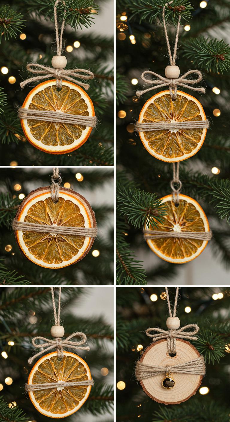 Dried orange ornaments are beautiful and simple to make. Slice oranges and dry them in an oven or a dehydrator. Once dried, string them together with twine to create garlands or hang them individually as ornaments. This project is an inexpensive way to add color and a pleasant scent to your decorations. They bring a rustic touch to any setting!