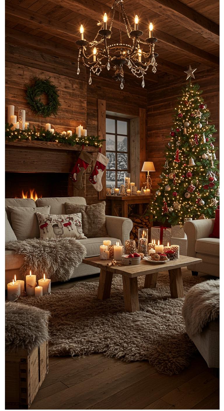 Layer textures for a warm, inviting atmosphere. Combine soft textiles like faux fur with rustic wood furniture. This adds depth and comfort to your holiday decor. You can easily find textured throws or pillows on a budget. Utilize items like wooden stools and tables to create balance. By mixing elements, you bring a cozy, rustic feel into your home.