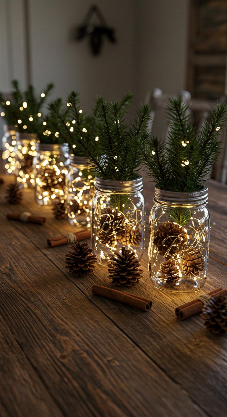 Mason jars are versatile for holiday decoration. Fill them with pinecones, greenery, or even fairy lights for a magical touch. Start with clean, empty jars. Layer them with natural materials like berries and twigs. You could also add a sprinkle of glitter for a festive touch. This project is cost-effective and can be customized for use throughout your home. Use these as centerpieces on your dining table or to decorate shelves.