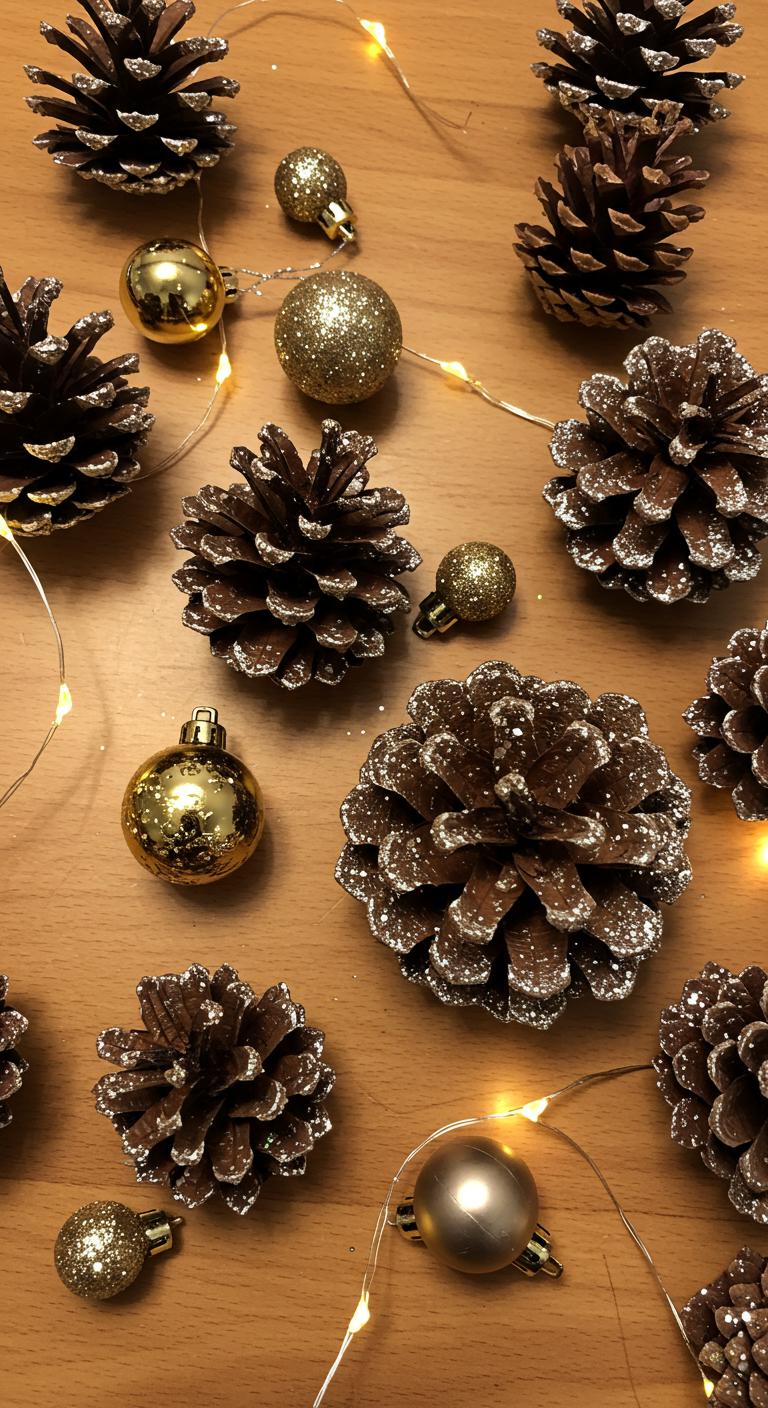 Bring the beauty of nature indoors with glittering pinecones. Start by gathering pinecones from your yard or nearby park. Using craft glue, dab a bit on the edges and sprinkle glitter over them for sparkle. These can be displayed in bowls, strung together as garlands, or used to enhance your holiday centerpieces. They are budget-friendly and add an organic touch to any arrangement.