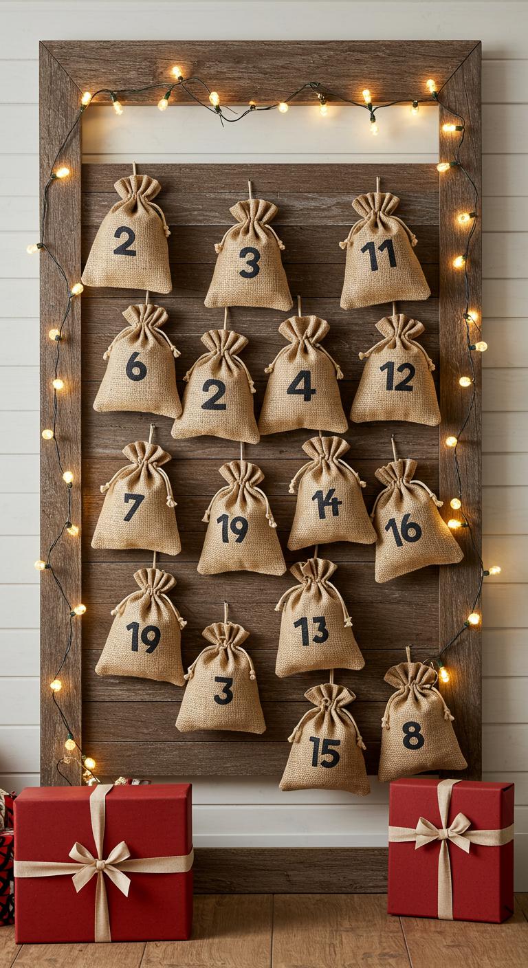 Create anticipation this season with a farmhouse advent calendar. Use burlap sacks hung on twine to hold treats or messages. Number each sack for the days leading up to Christmas. This project is simple and cost-effective, as you can repurpose items or use materials from craft stores. Personalize it with family-friendly treats or notes to build excitement for the holidays!