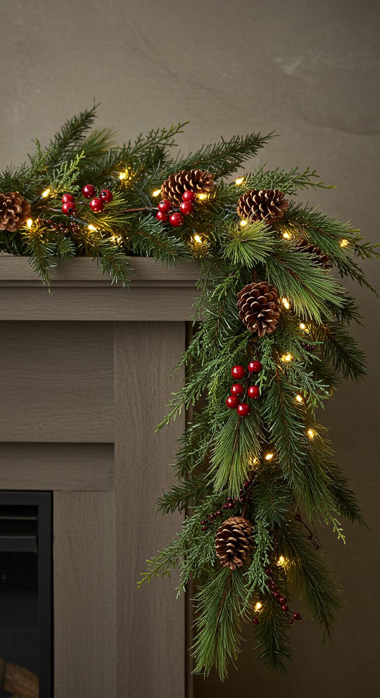 Natural garlands serve as stunning festive displays. Use fresh or faux evergreens mixed with berries. You can purchase these or make your own! Look for pine, cedar, or boxwood at your local garden center. Place them over mantels, doorways, or your dining table. For a rustic touch, wrap twine or plaid ribbons around it. This simple addition elevates your home’s holiday feel.