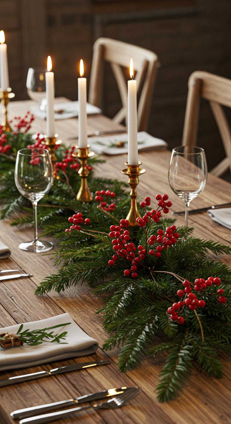 Create beautiful centerpieces with berries as focal points. Use fresh or faux berries mixed with evergreen boughs. Arrange them in a basket or bowl for a creative centerpiece. To save money, forage for natural elements in your yard or at a local park. This project is affordable and allows you to customize it with anything you have at hand. Scatter some twinkle lights around to create that extra warmth!