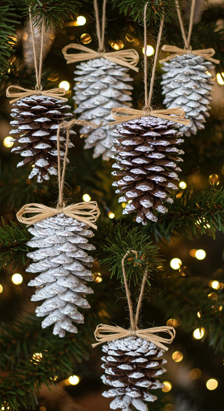 Transform ordinary pine cones into charming ornaments for your Christmas tree. Start by gathering pine cones from your local park or garden. After cleaning them, paint them with festive colors or sprinkle some glitter for a bit of sparkle. Attach a loop of twine for hanging. You can even personalize them by writing names or messages on them. This project is not just economical but is perfect for involving kids too. Hang them on your tree for a lovely rustic touch.
