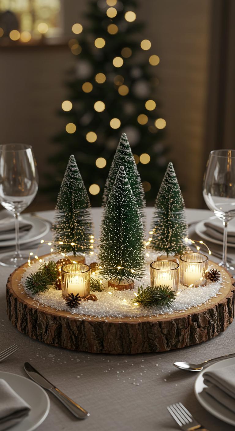 Create a winter wonderland centerpiece on your table with minimal effort. Use a large, shallow bowl or a wooden tray. Start by adding faux snow or cotton balls to create a base. Arrange miniature trees, pinecones, and fairy lights inside. Use natural elements like wood slices for added texture and height. This project is quick and creates a cozy holiday atmosphere without breaking the bank.