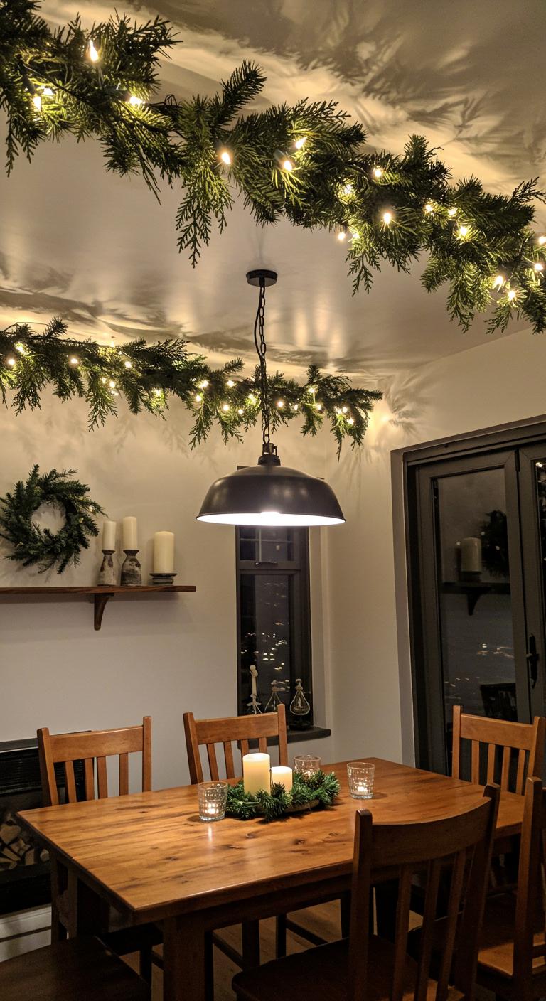 Create a rustic ceiling garland using fresh or faux evergreen branches. Begin by gathering branches and twisting them together with floral wire. Add twinkling lights throughout for a magical effect. Hang this garland from ceilings in your dining or living area. This project offers a natural, festive feel that enhances your holiday parties. It’s easy to do and definitely becomes a focal point of any room.