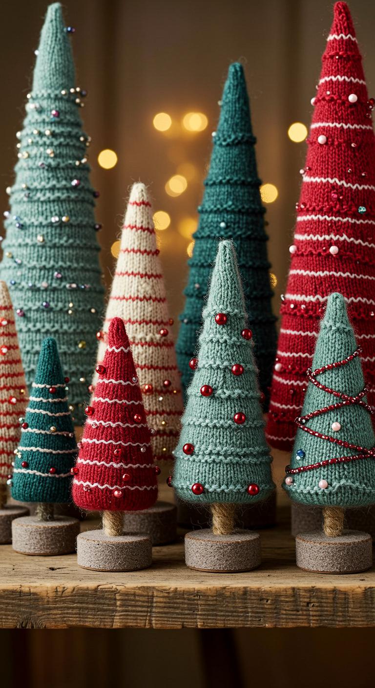 Knitted Christmas trees are an adorable craft that adds texture to your holiday décor. If you have leftover yarn from other projects, use it to knit or crochet small trees in different sizes. Decorate them with beads or buttons for a personal touch. Place the completed trees on shelves, tables, or mantels. This project can easily be done with leftover materials and is perfect for beginners who want to share some cozy craftsmanship this holiday.