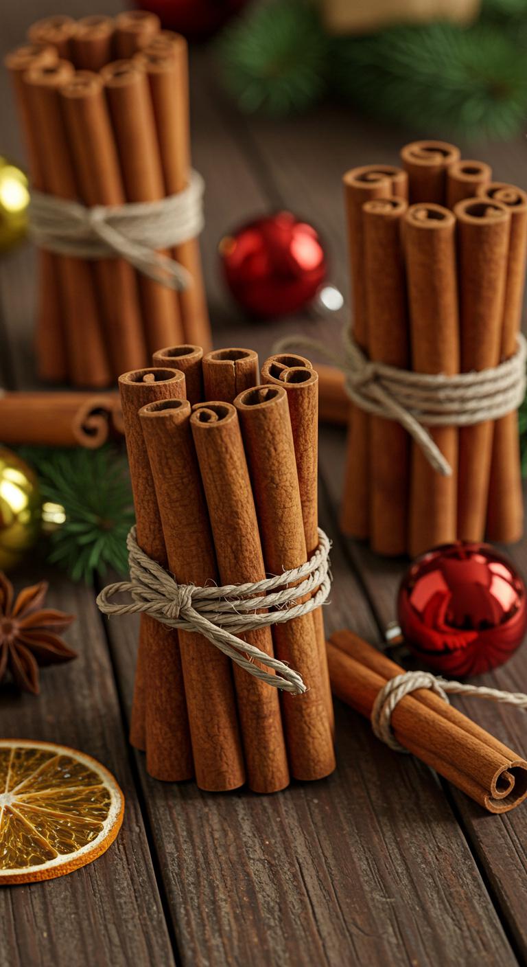 Cinnamon stick bundles make wonderful, aromatic decorations. Simply tie together a few cinnamon sticks with twine and place them in a bowl or hang them as ornaments. The natural scent adds a festive smell to your home, and the rustic look fits beautifully with country decor. These bundles can be made in no time at all and are an excellent way to bring in the essence of the season.