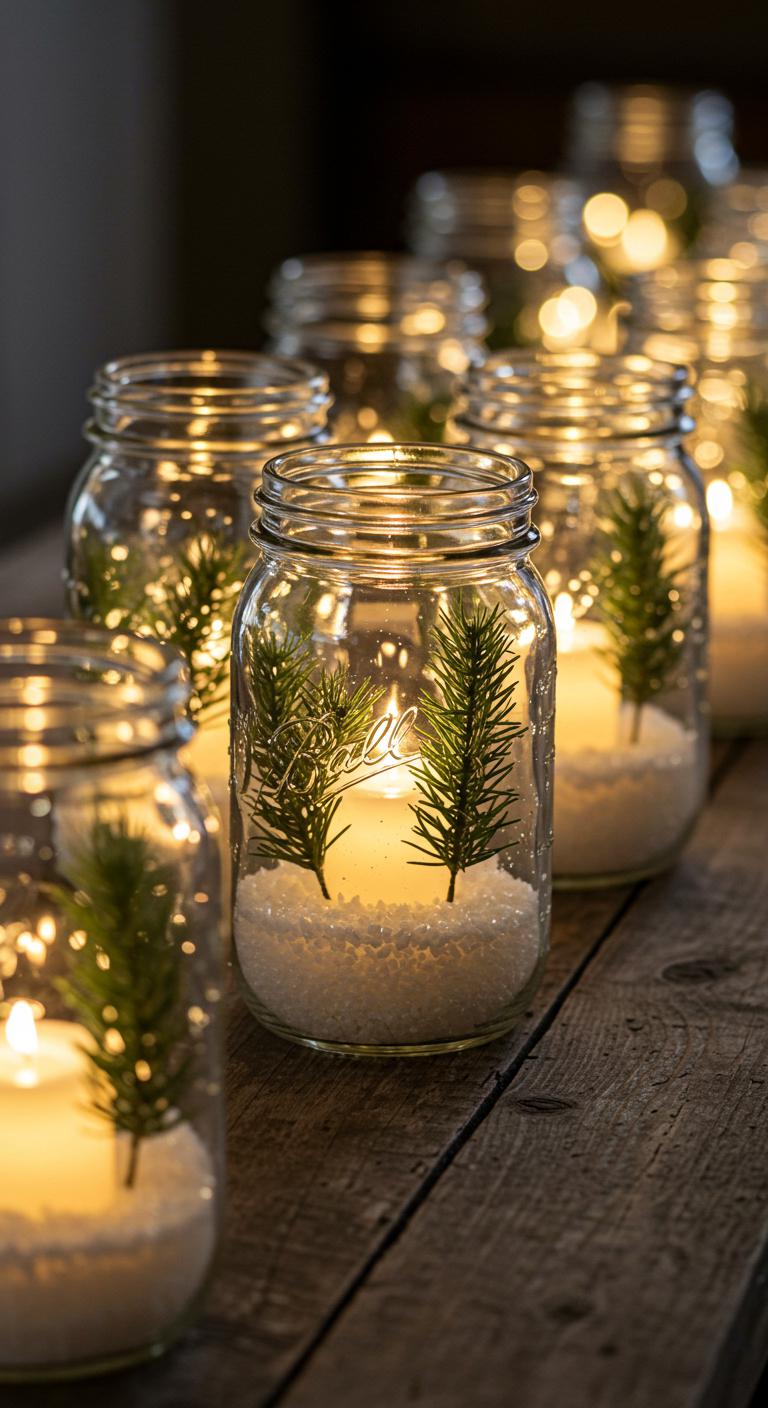Mason jars can be transformed into enchanting candle holders. Fill a jar with fake snow, twigs, or small ornaments. Place a tea light or LED candle inside for a magical glow. For extra charm, tie a piece of twine around the neck of the jar. You can easily customize it according to your home’s color palette. This DIY takes minimal effort and uses items so many of us already have at home. Line them up on your dining table or windowsill for a festive atmosphere.