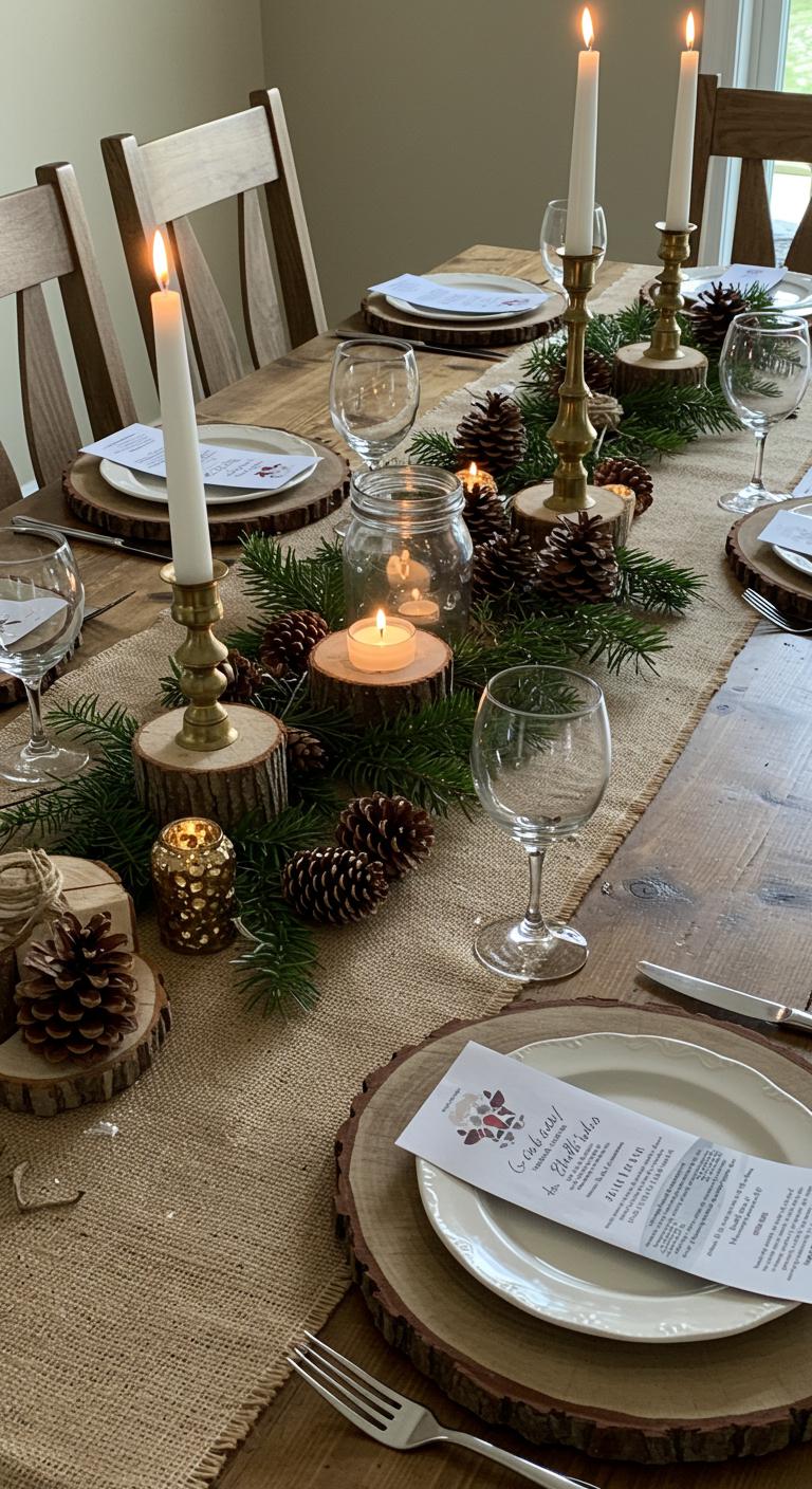 Crafting a burlap table runner is straightforward and adds a rustic look to your dining area. Measure the length of your table and cut a piece of burlap slightly longer, giving a natural edge. You can also embellish it with stenciled designs or seasonal patterns using fabric paint. Pair it with natural elements like pinecones or evergreen branches in the center for a charming look. This not only keeps costs down but allows you to personalize your décor.