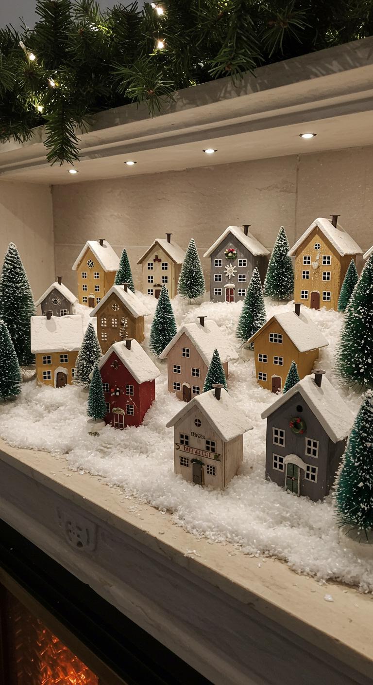 Creating a snowy village scene can be a charming addition to your home this holiday. Use simple wooden houses or ceramic ones and coat them with a layer of faux snow or glitter. Arrange them together on a shelf or mantel, adding miniature trees for height and interest. This project allows for creativity—paint the houses or add tiny decorations. It becomes a wonderful centerpiece that brings holiday cheer to any space.