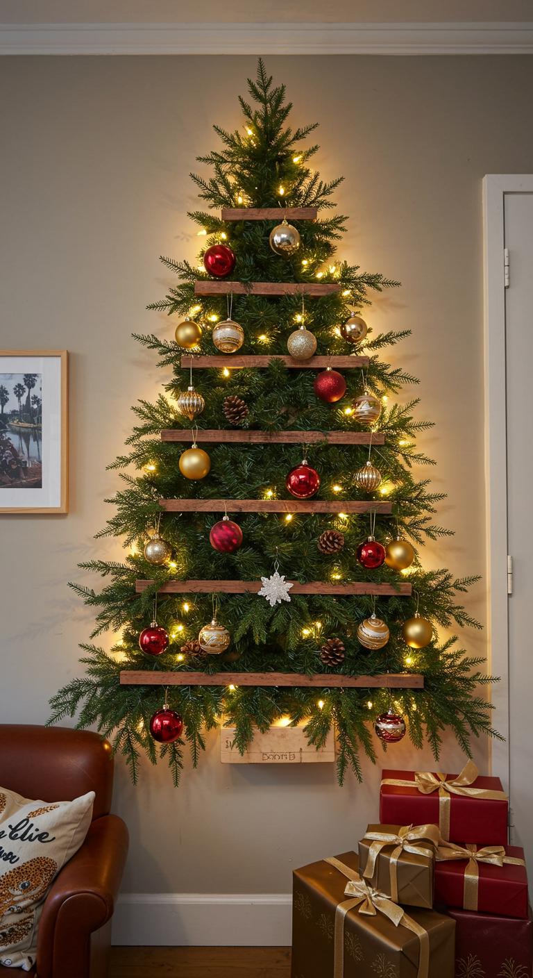 Wall-mounted trees are perfect for those who appreciate creative decor solutions. These designs save space and offer a customizable layout. Use a wooden frame or even string lights. DIY suggestion: Create a hanging display with hooks and ribbons for a fun, modern take on the Christmas tree.