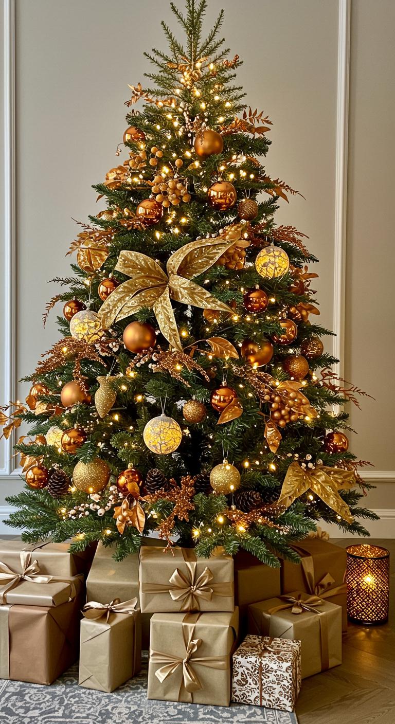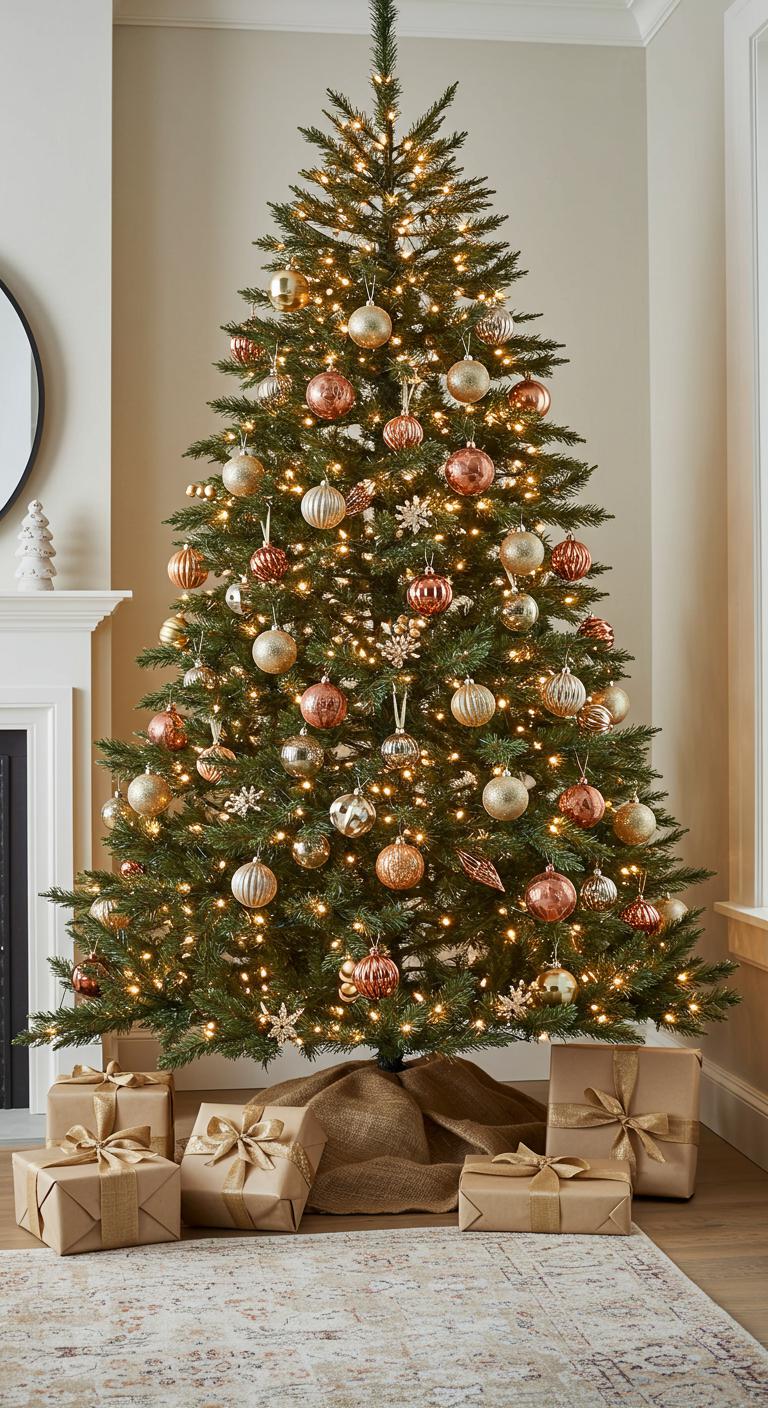 Add a touch of glam to your neutral tree with metallic accents. Copper, soft gold, and terracotta create a warm glow. Use these color palettes sparingly to enhance the tree without overshadowing it. DIY idea: Try spray painting inexpensive ornaments in metallic shades to add a touch of elegance at minimal cost.