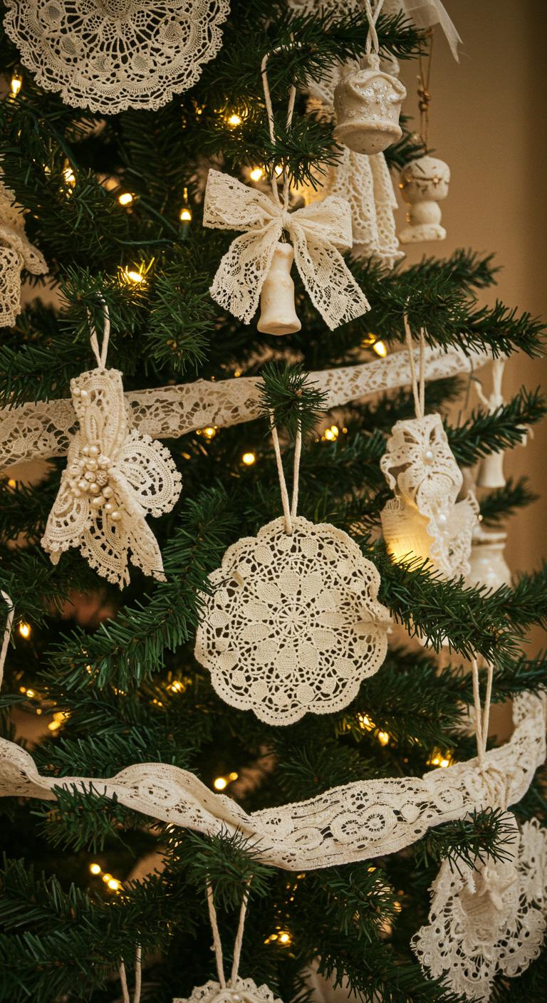 Incorporate vintage lace and doilies for a charming nod to nostalgia. This delicate touch softens the overall look. Use these materials as garlands for depth. Budget-friendly tip: Check thrift stores for lace tablecloths or doilies. They are often inexpensive and bring a vintage charm to modern decor.