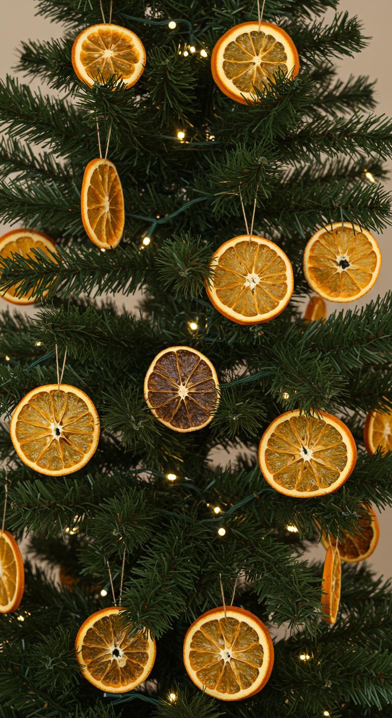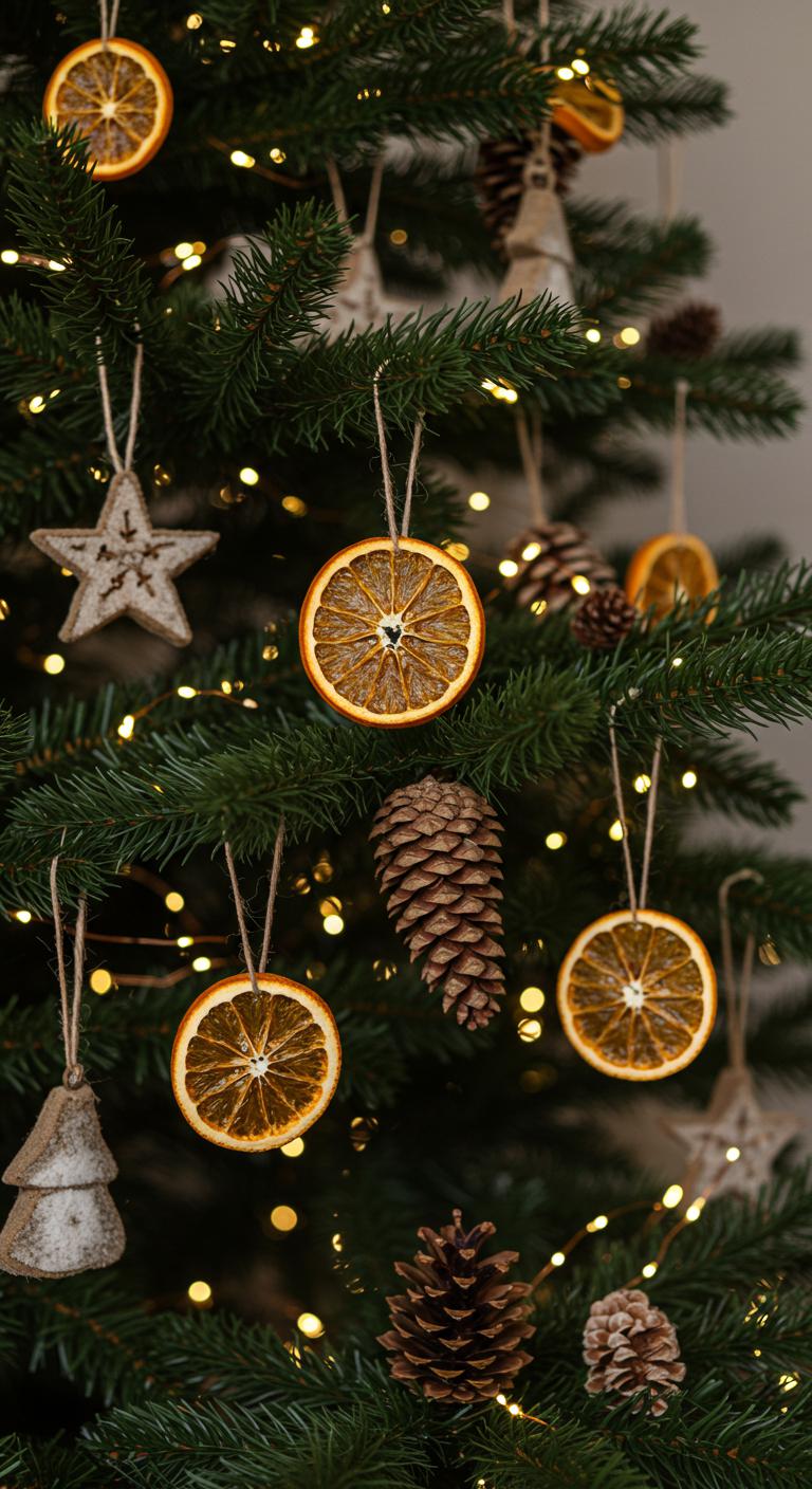 Dried citrus is a charming addition to your tree. The vibrant colors add punch to the neutral color palette. Plus, they smell delightful! DIY idea: Slice oranges or lemons thinly and dry them in the oven. String them together with twine for a rustic garland effect.