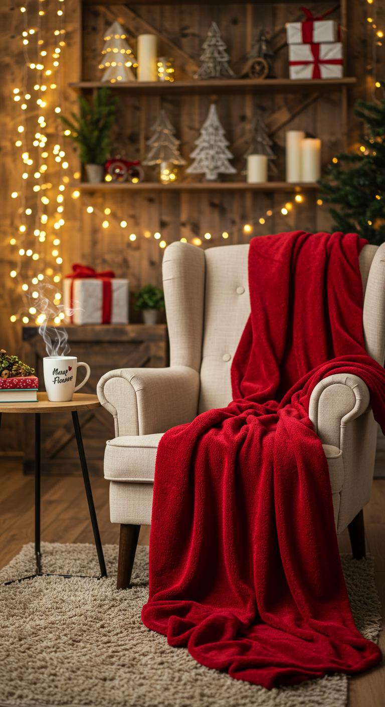 Add warmth to any corner with a cozy red throw blanket. This simple touch transforms your space into a snug winter retreat. Drape it over your couch or chair for that festive flair. Look for options in soft materials like fleece or velvet for an extra touch of luxury. You can even DIY your own! Find a discount fabric store, and select a nice red fabric. Simply cut it to the desired size; no sewing needed! Place the throw next to a chair or on your bed for a chic holiday accent.