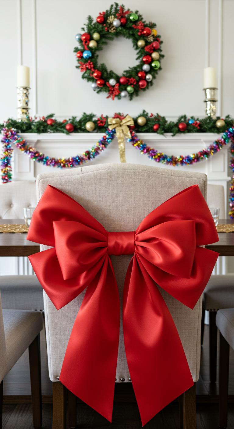 Give your decorations an instant upgrade with oversized red bows. These can be an affordable statement piece to your holiday decor. Attach a large bow to your front door, chairs, or tree to infuse a festive feel. You can craft your own bows using wired ribbons from a craft store. They are simple to tie and can be customized in size. Use extra fabric to create small bows to accent garlands or gift packages for a cohesive look around your home.