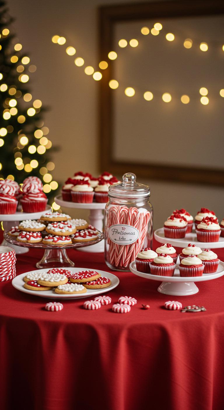 Consider creating a sweet treat display to add a dash of cheer to your home. Mix red and white desserts on a side table or your kitchen counter. The pop of color will instantly brighten your space! Get creative—red velvet cupcakes, candy canes, or frosted cookies in festive shapes work well. To make it budget-friendly, bake your own treats. Use simple recipes that kids can help with, too. This way, you create holiday memories while decorating.