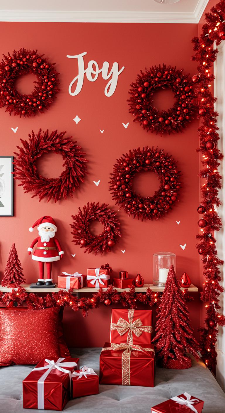 Wall-mounted decor utilizes vertical space effectively. Get creative with wreaths, garlands, or even framed holiday prints. Choose a vivid red hue to make a statement. Wreaths provide a classic charm. Use removable adhesive hooks to avoid damaging walls. You can even DIY wreaths using faux greenery and red ribbons. This way, your decor becomes part of your home’s ambiance without taking up table space.
