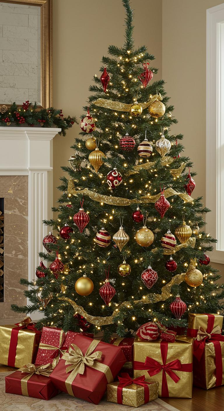 There’s something timeless about traditional red and green trees. This nostalgic styling fosters a sense of familiarity and warmth during the holidays.